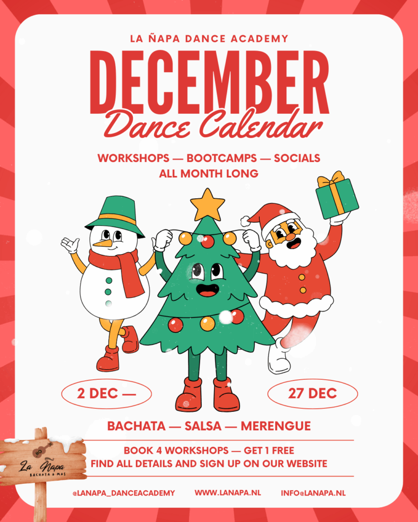 In december organiseren we opnieuw onze workshopmaand: een maand vol workshops en bootcamps in diverse dansstijlen en op verschillende niveaus. Daarnaast hebben we drie gezellige dansmomenten op de planning: